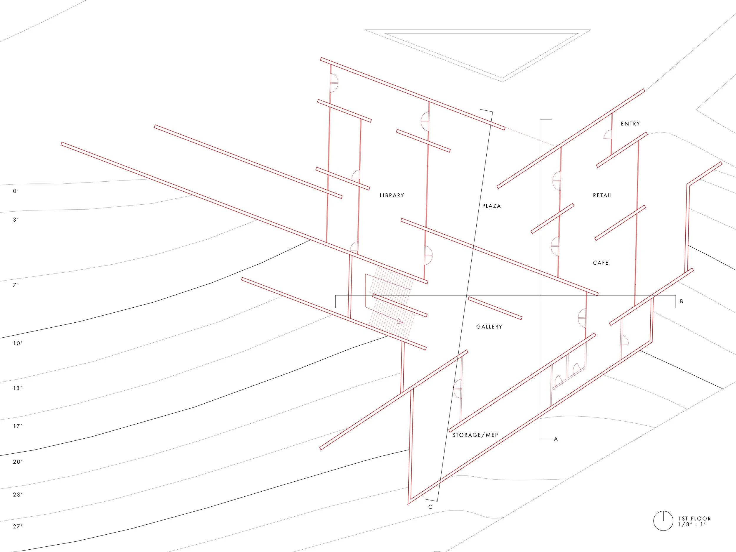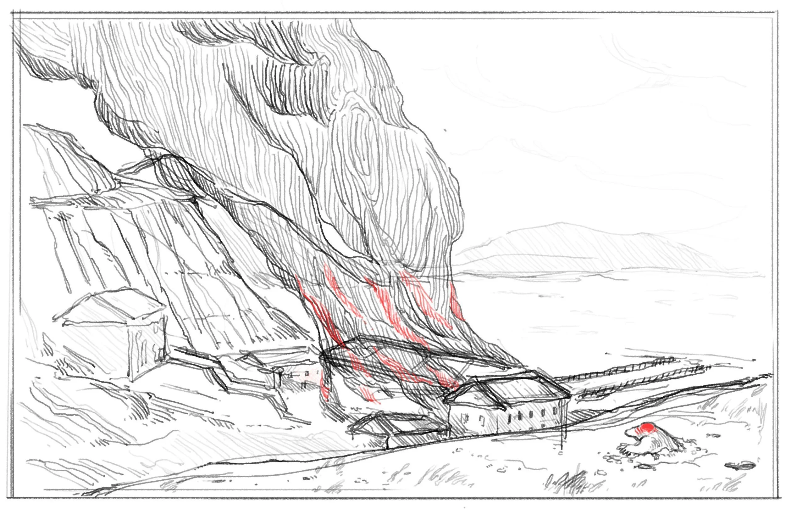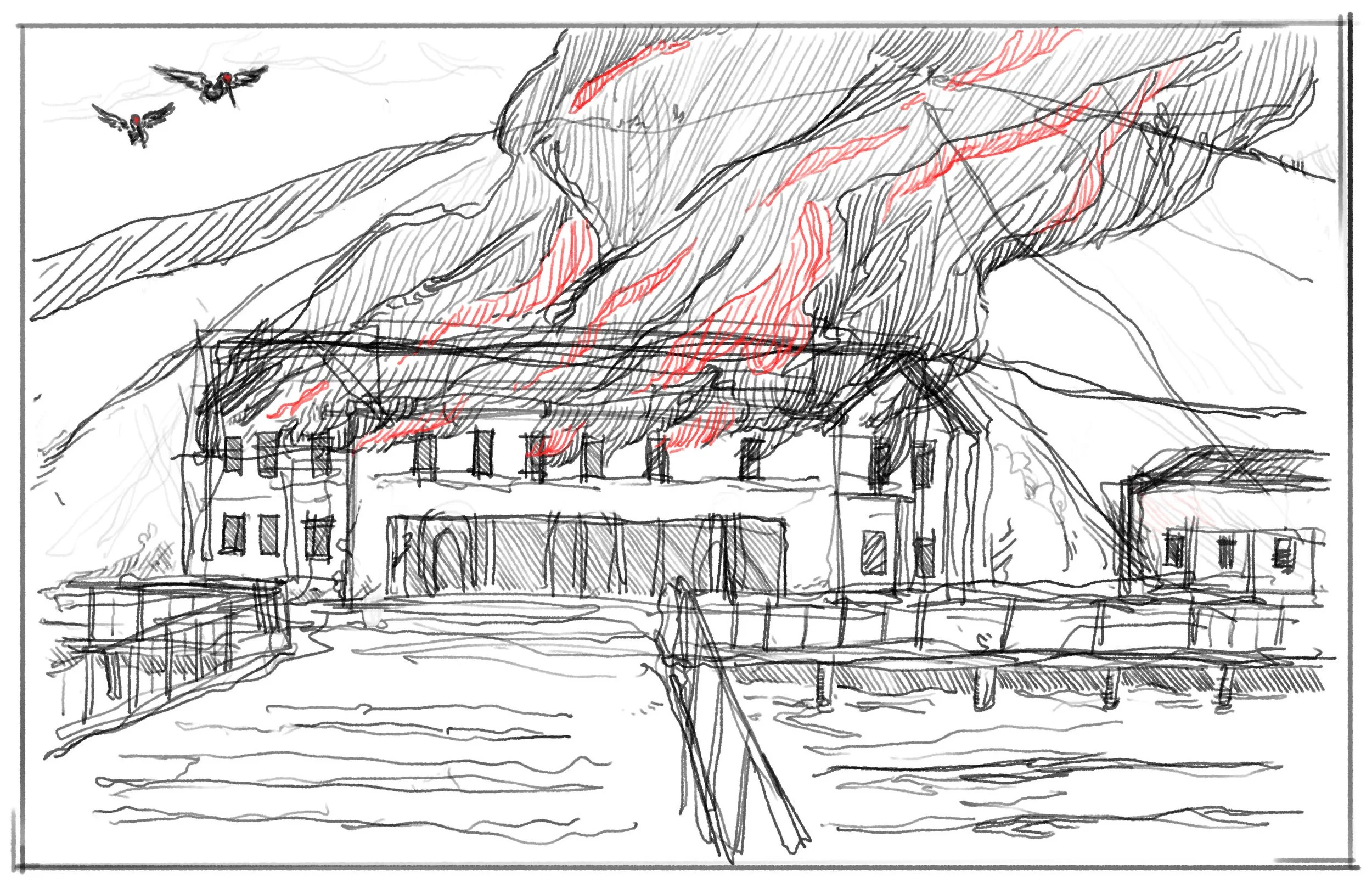 The Terror, located on Angel Island, is a study of the life and death of a building. Inspired by the Angel Island Immigration Station fire of 1940. The building contained all the records of the Asian immigrants that were detained and interrogated there. It burned down in the middle of the night under mysterious circumstances. Shortly after the operation had moved to the mainland. The fire changed the island and because of it Angel Island was given a new life.